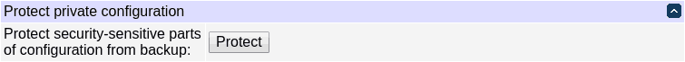You may protect the security-sensitive parts of the configuration from being stored in a backup. Pressing the hardware reset button will be required to unlock.