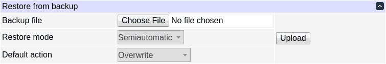 To restore configuration from backup, upload it using the following form: