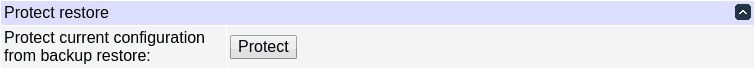 You may protect the configuration from being overwritten on backup restore. Pressing the hardware reset button will be required to unlock.