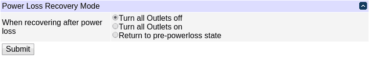 The power loss recovery mode setting has three settings which take effect after a power failure:
