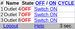 Individual outlets can be manipulated as usual. The top links allow switching all accessible outlets on, off or cycling them.