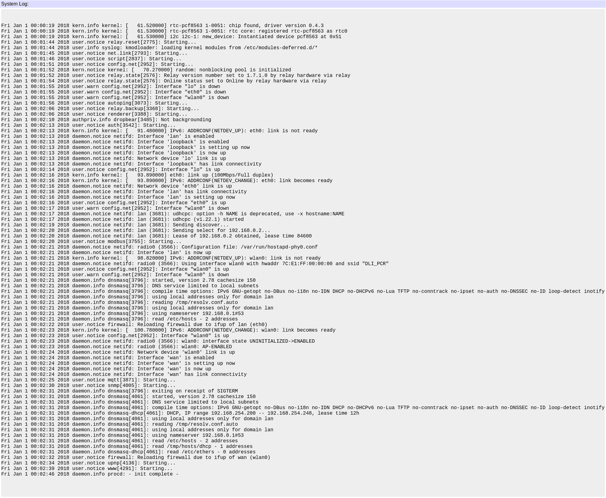 Note that the system log buffer has a fixed size, and old entries are removed automatically as new ones appear. The display is periodically updated.