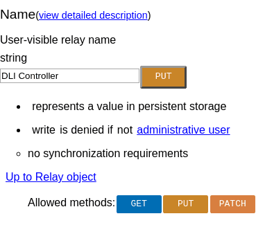 JSON-RPC allows to access an object model similar to the one of the REST-like API, but in a different manner which may be more suitable for some integration environments. All composite objects are visible using JSON-RPC, with their field values accessible using "get" (with the field name in the argument) and "set" methods (with the field name and value as arguments). Additionally, containers support "add", "remove" and "list" methods. The "describe" method can be used to output a type description for the object (similar to the REST API "description" relative URI).