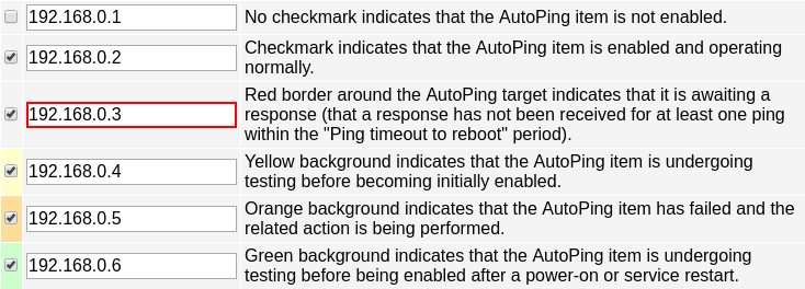 To actually use AutoPing, add one or more AutoPing targets (IP addresses) to the list. The