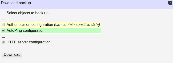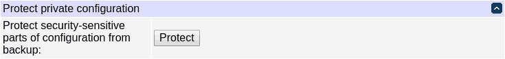You may protect the security-sensitive parts of the configuration from being stored in a backup. Pressing the hardware reset button will be required to unlock.