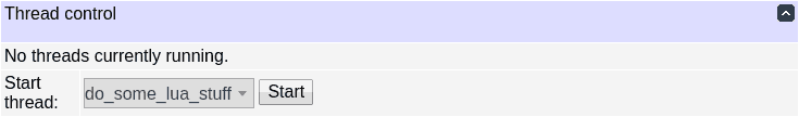Threads can be started from the web UI, via an HTTP request, by an AutoPing trigger, or from other threads using thread.run. They can be explicitly stopped using the web UI or by calling thread.kill or thread.killall from the script, or implicitly by calling thread.limit.