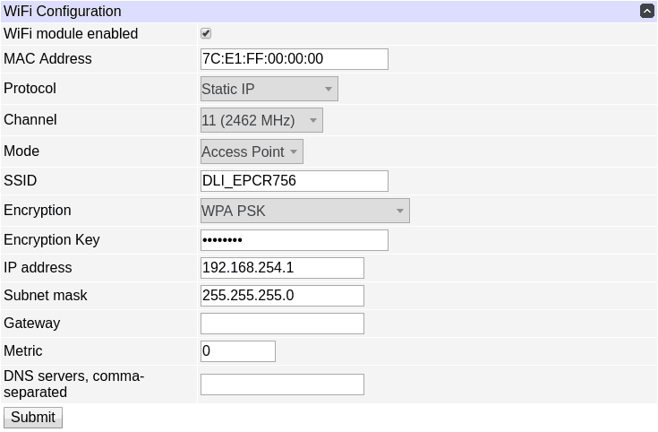 It is recommended to configure the DHCP server to provide a static lease for the EPCR7 using its MAC address (also displayed).