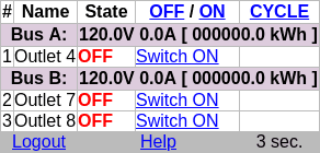 Individual outlets can be manipulated as usual. The top links allow switching all accessible outlets on, off or cycling them.