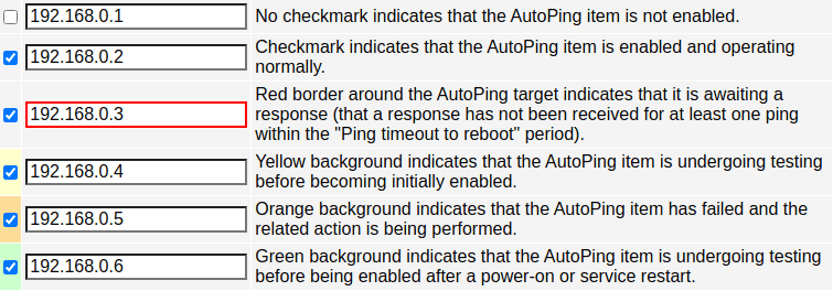 The current AutoPing item and target state is indicated as follows:
