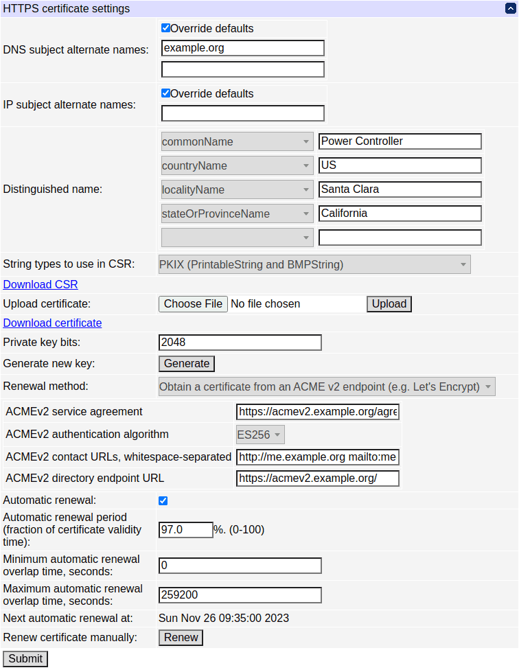 If you perform CSR signing manually, be sure to switch automated renewal off as it will cause (e.g. generation of a self-signed certificate) once the certificate you have uploaded is close to expiry, which is likely not what you want.