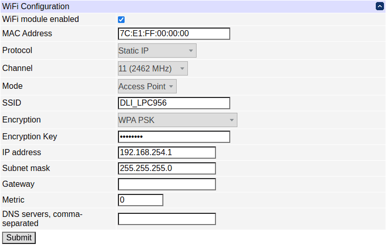 It is recommended to configure the DHCP server to provide a static lease for the LPC9 using its MAC address (also displayed).
