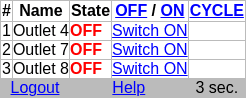Individual outlets can be manipulated as usual. The top links allow switching all accessible outlets on, off or cycling them.