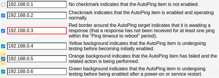 The current AutoPing item and target state is indicated as follows: